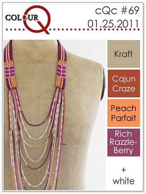 - Paper: Stampin' Up Peach, Cajun, Razzleberry, Crumb Cake, black and white